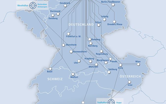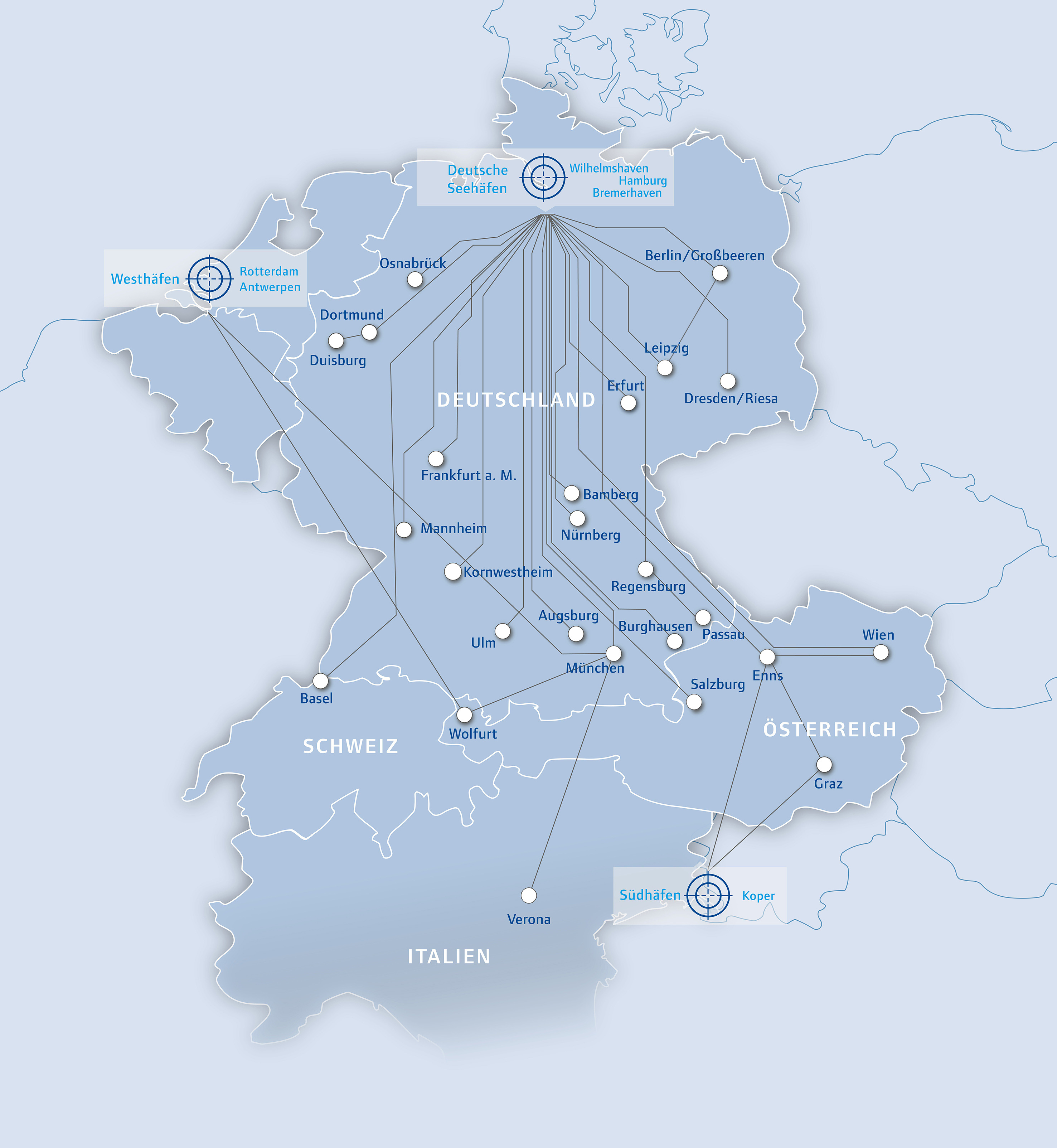 - 6 Häfen: Hamburg, Bremerhaven, Wilhelmshaven, Koper, Antwerpen, Rotterdam