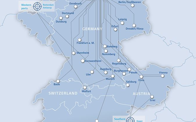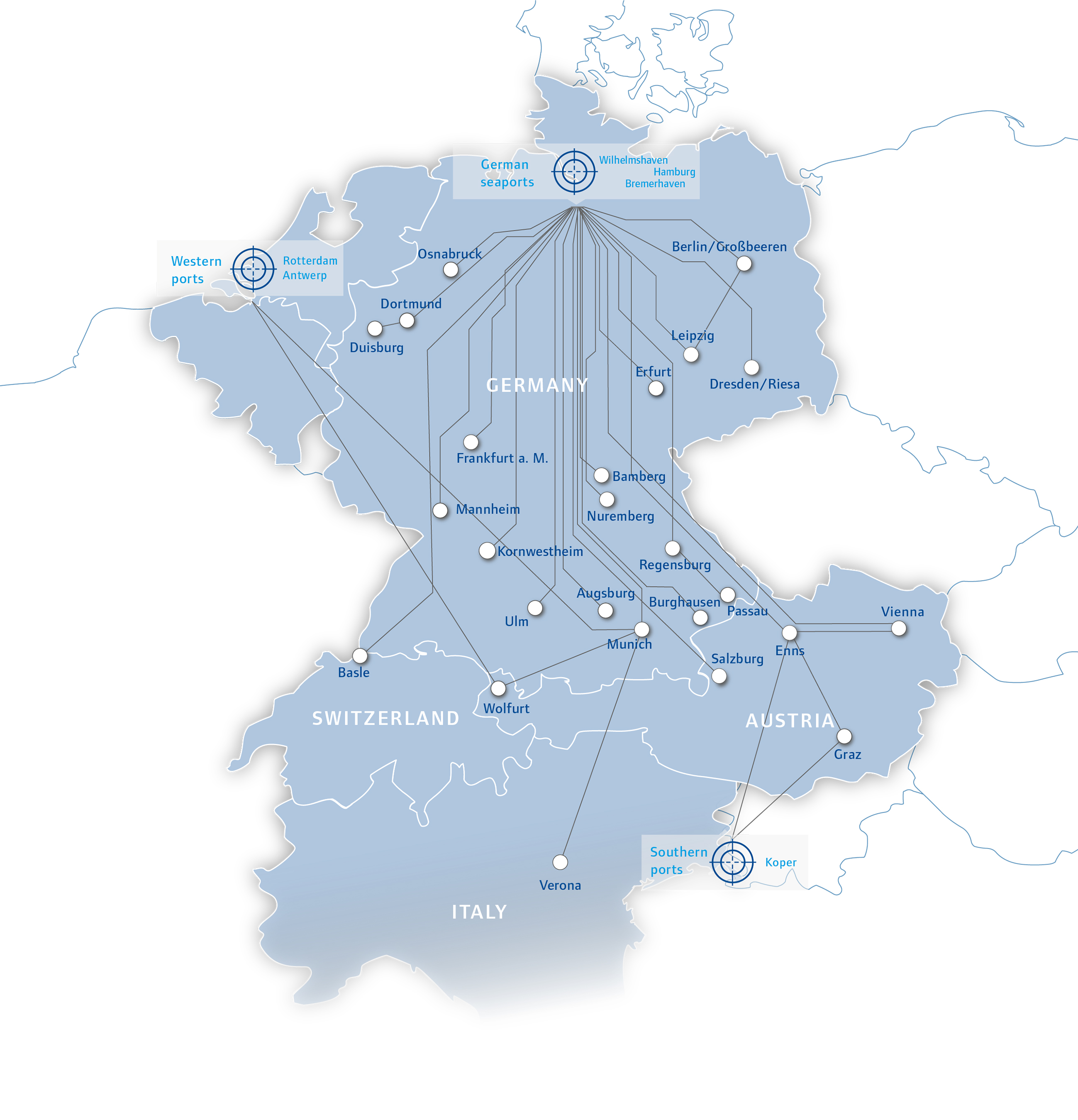 Whether your containers are to be transported to Germany, Austria, Switzerland, Italy or neighboring countries, whether via northern, southern or western ports – our range of logistics services will ensure the quick and reliable transportation of your goods to their destination.